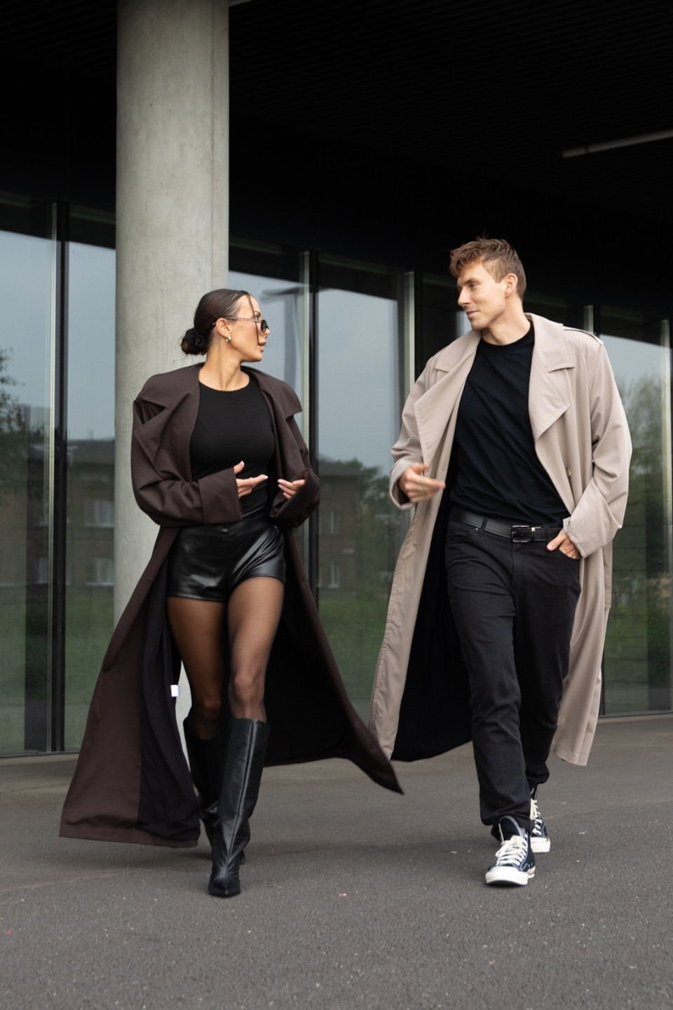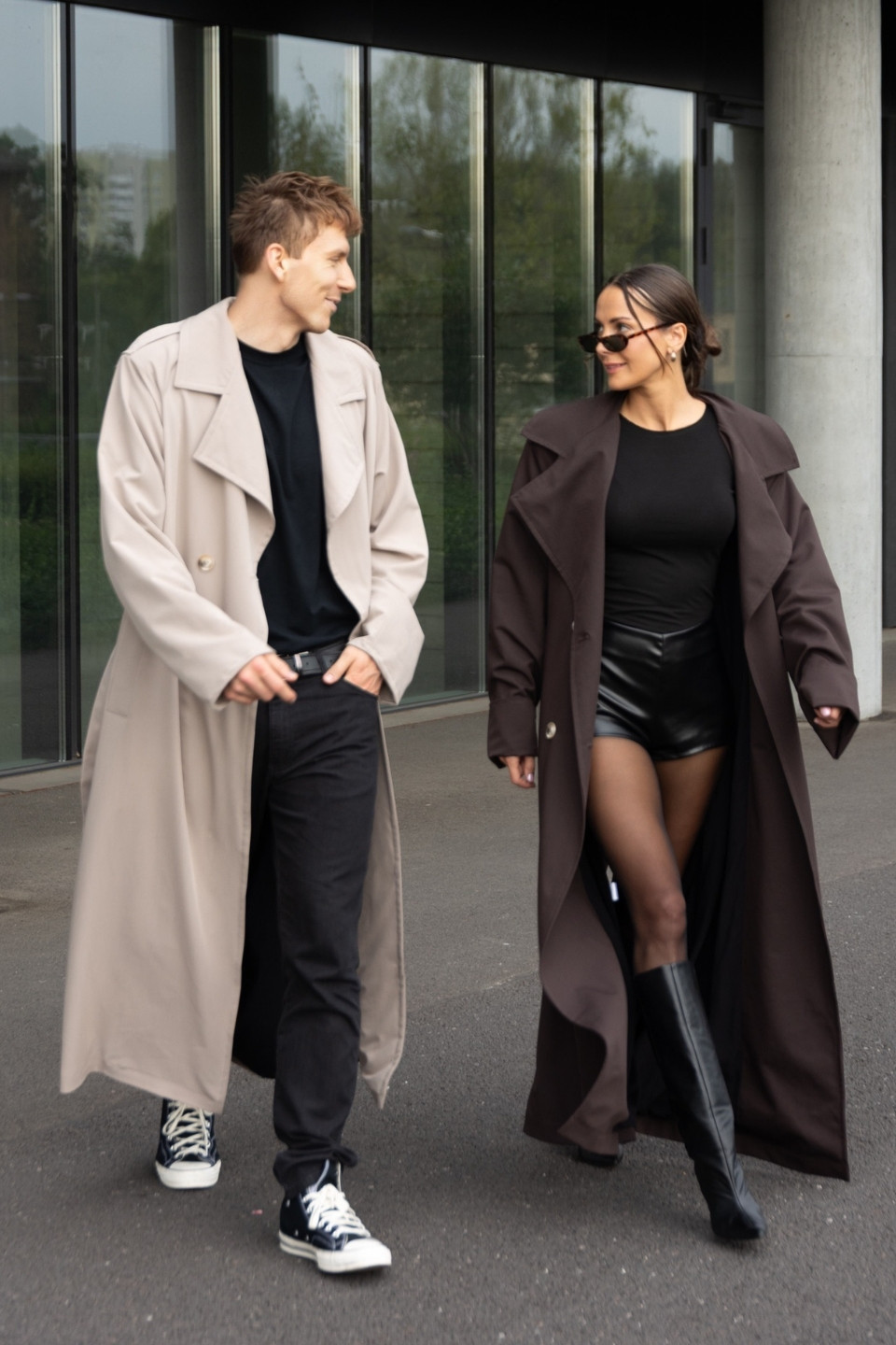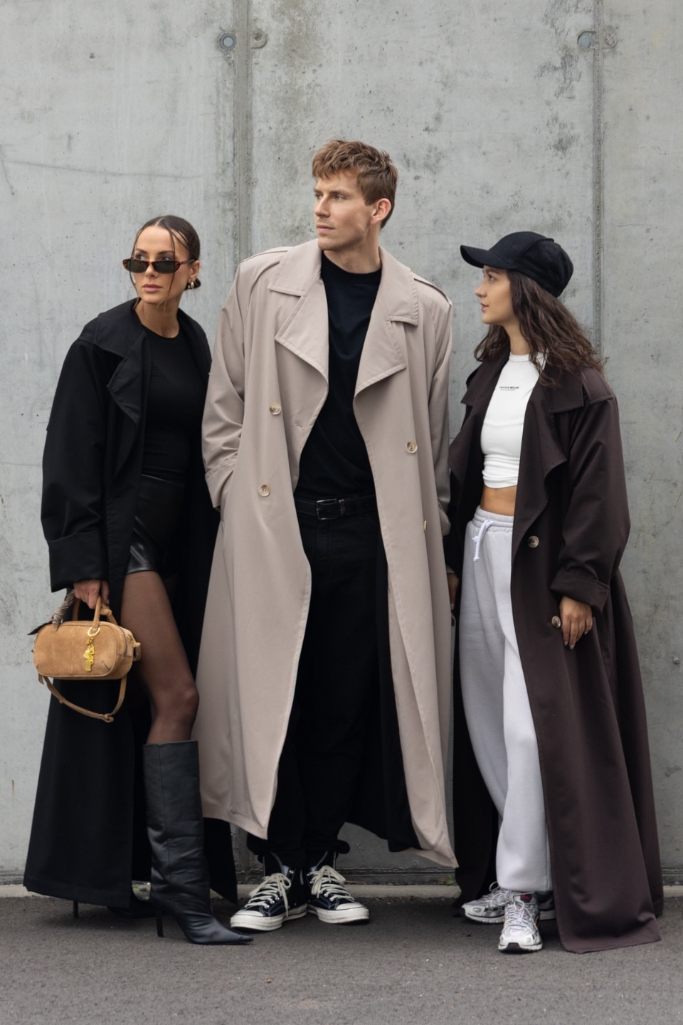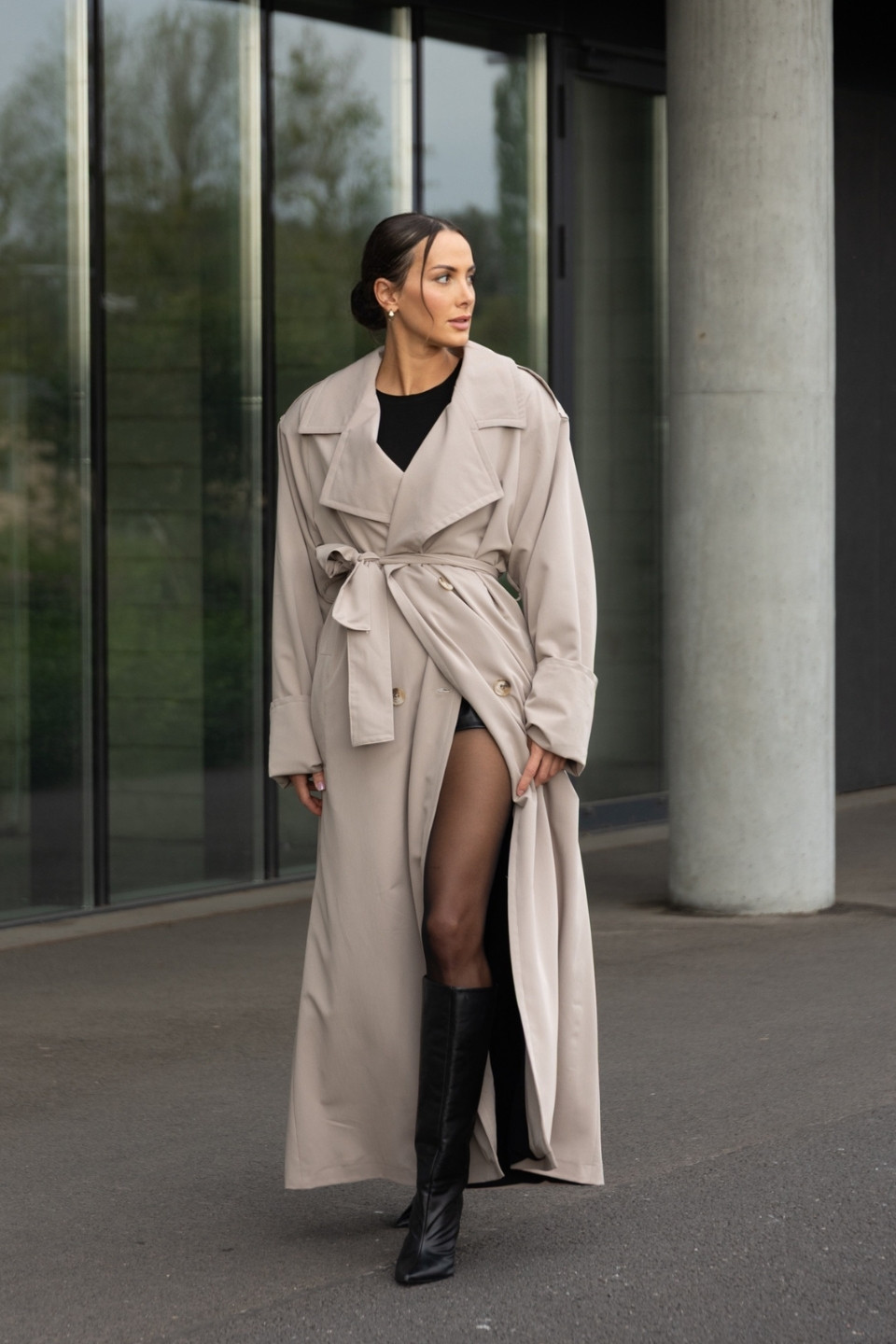 • (bardzo) długi płaszcz typu trencz/prochowiec