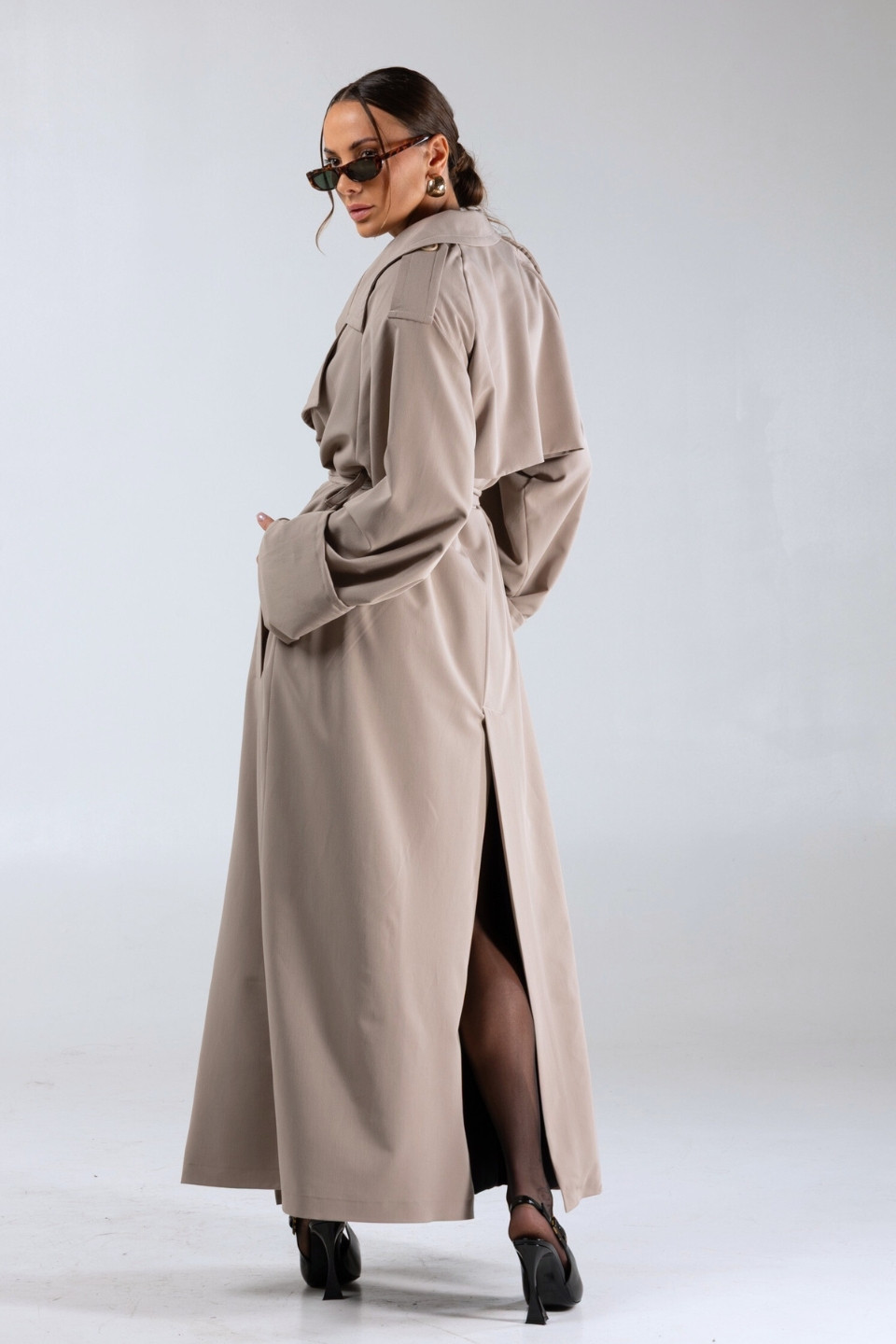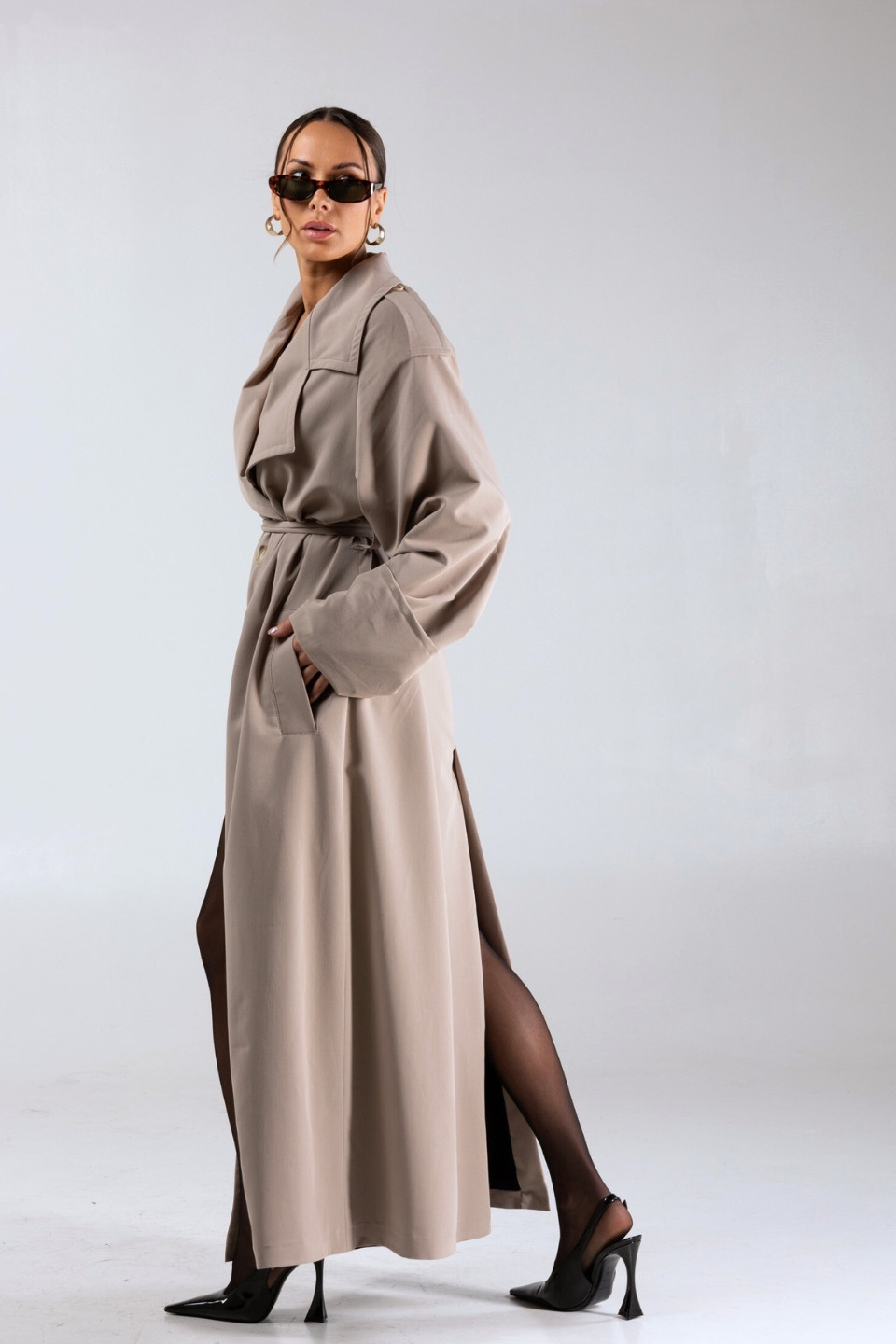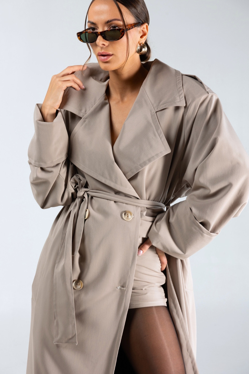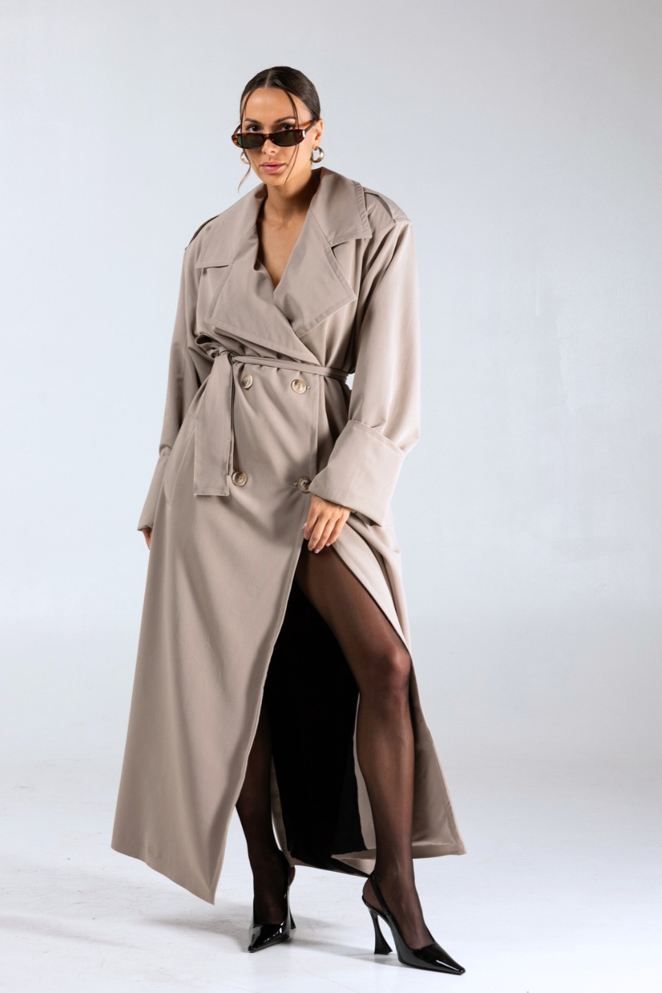 • (bardzo) długi płaszcz typu trencz/prochowiec