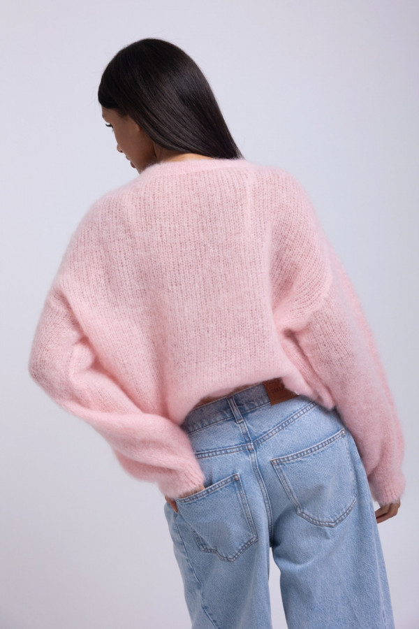 - sweter z puszystej, miękkiej moherowej dzianiny