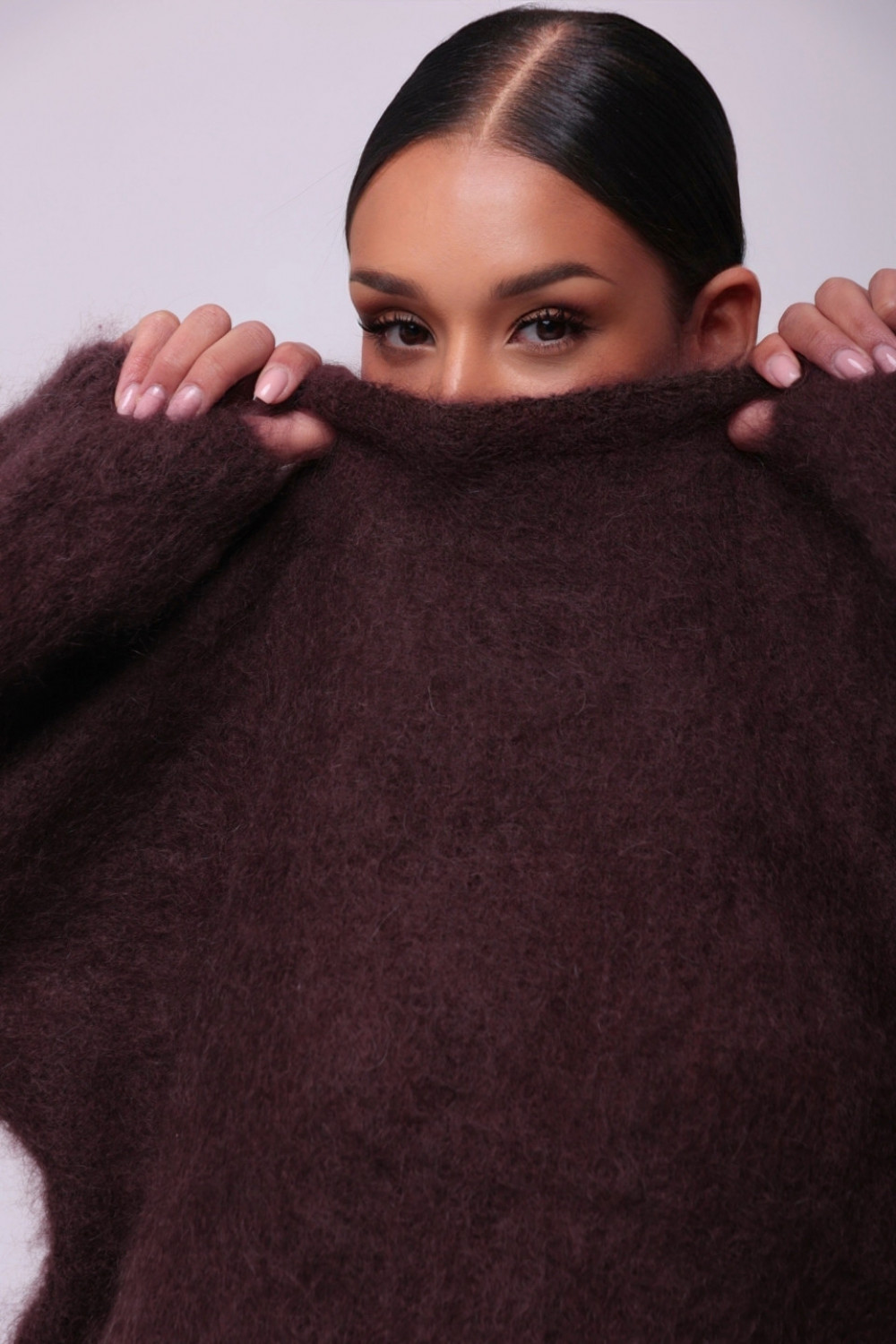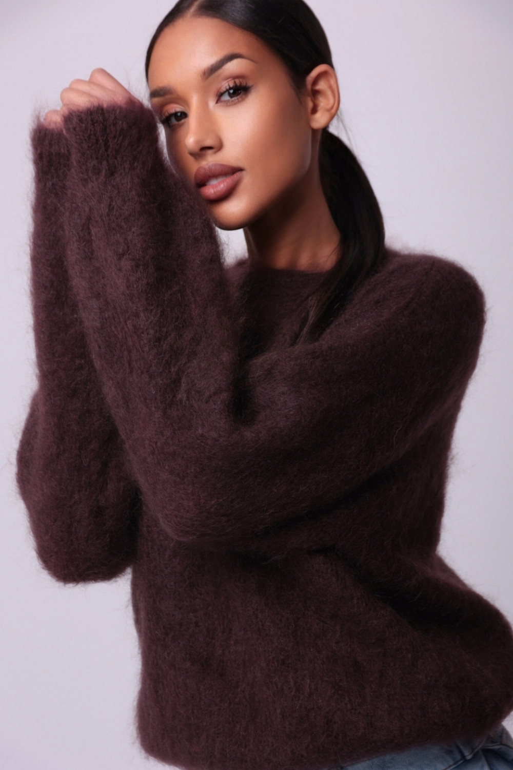 - sweter z puszystej, miękkiej moherowej dzianiny