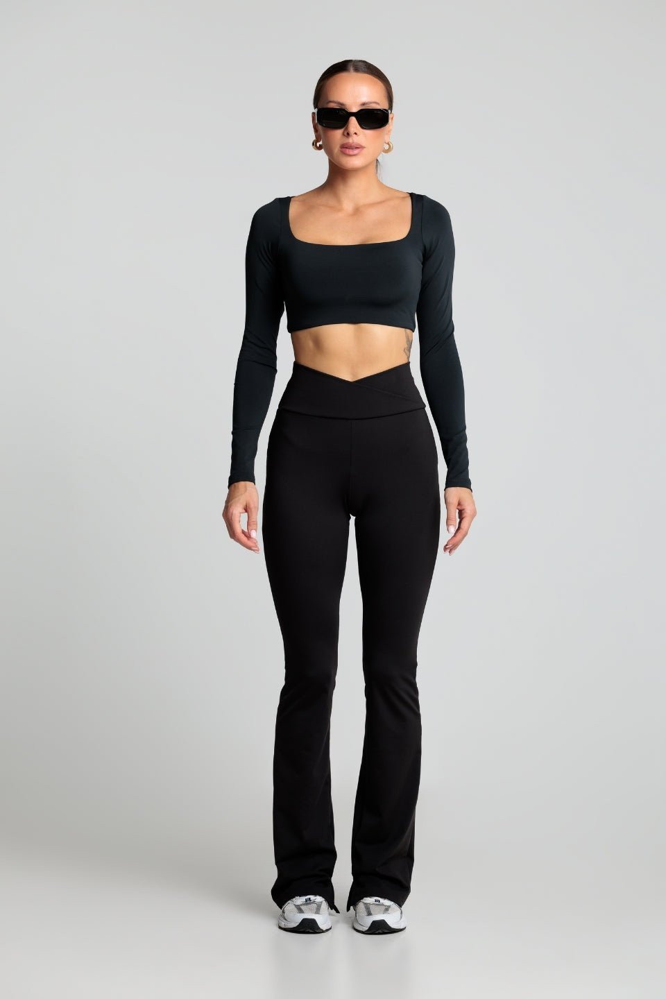 - długie spodnie typu FLARE - model optycznie wydłużający nogi!