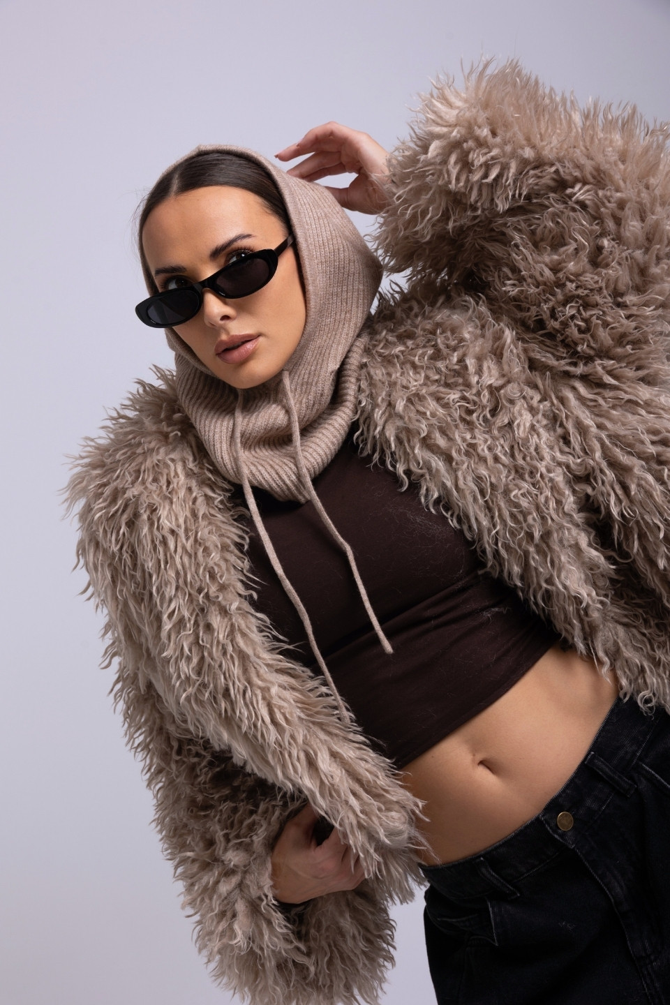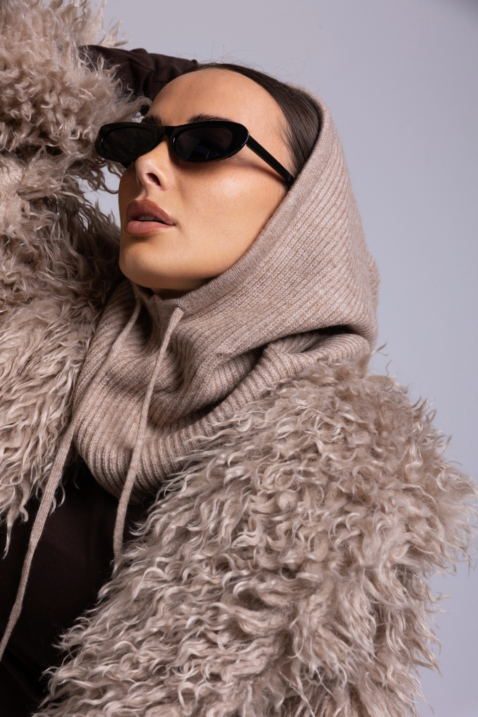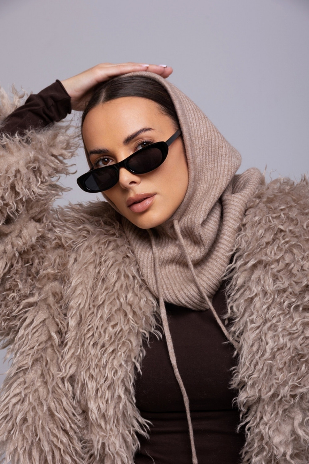 - Czapka-kaptur typu balaclava z domieszką wełny