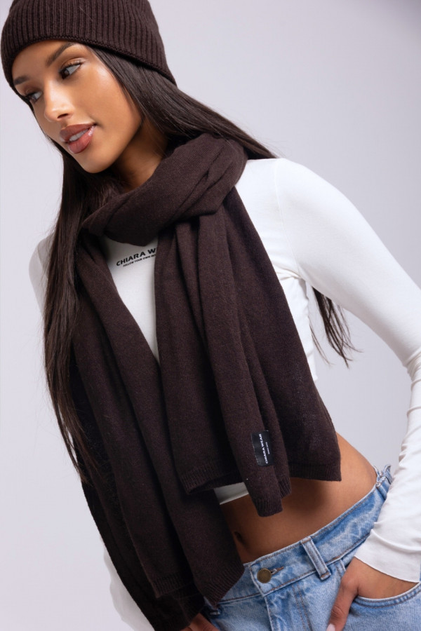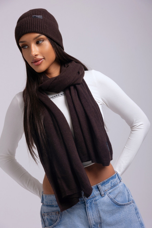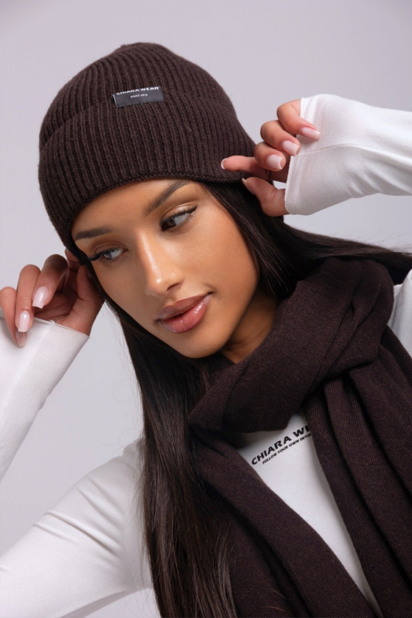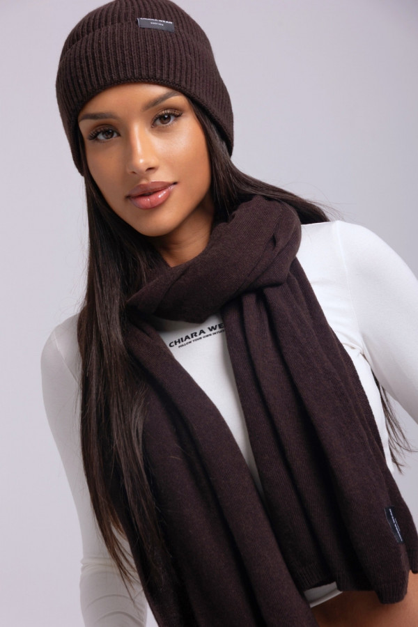 Komplet czapka + szalik kaszmir - brązowy