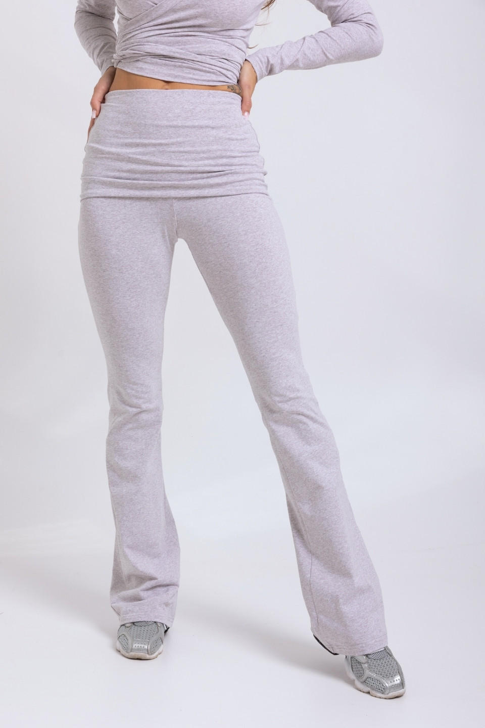 Długie dopasowane spodnie z pasem PILATES - szary melanż