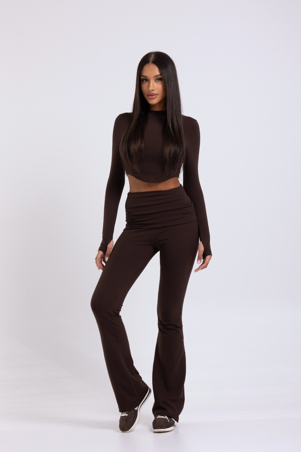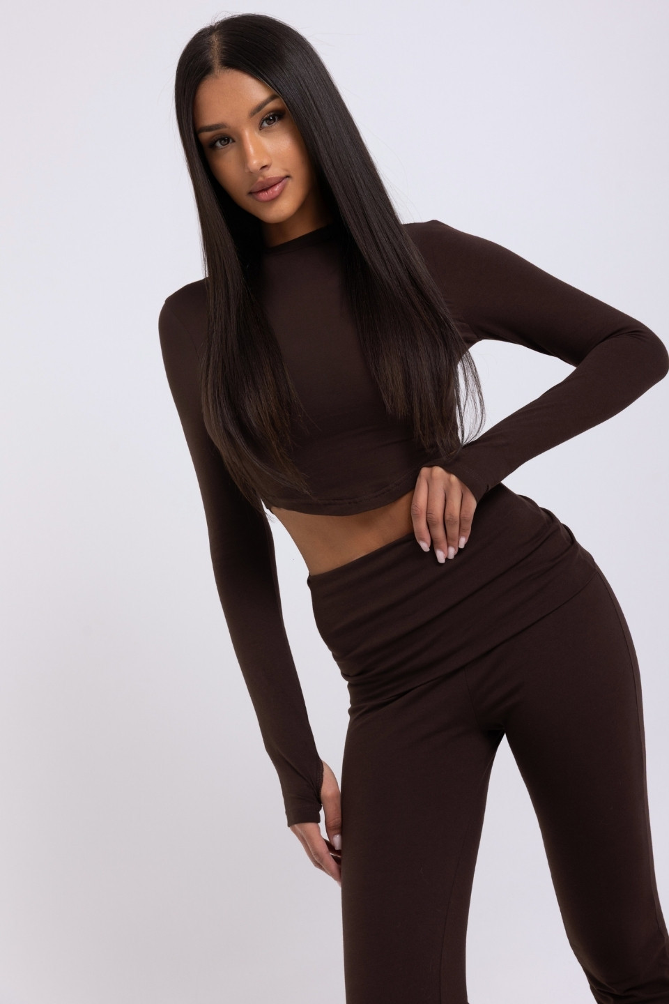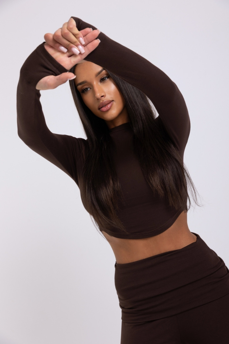 Krótki dopasowany longsleeve VALERIE - brązowy