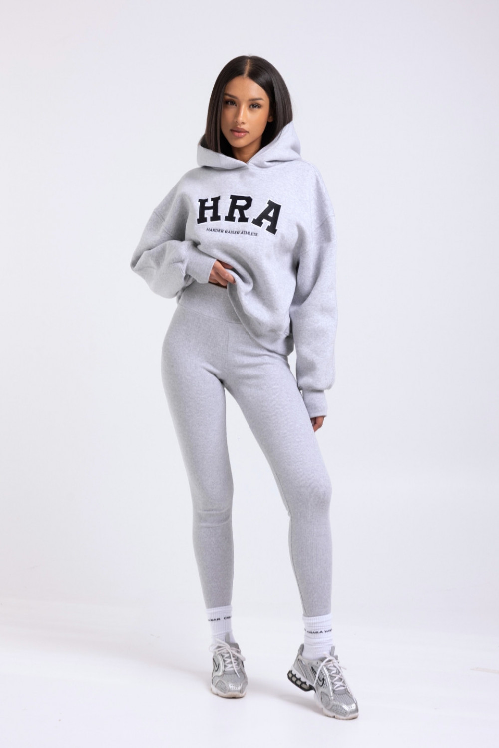 Legginsy push-up w prążek - szary