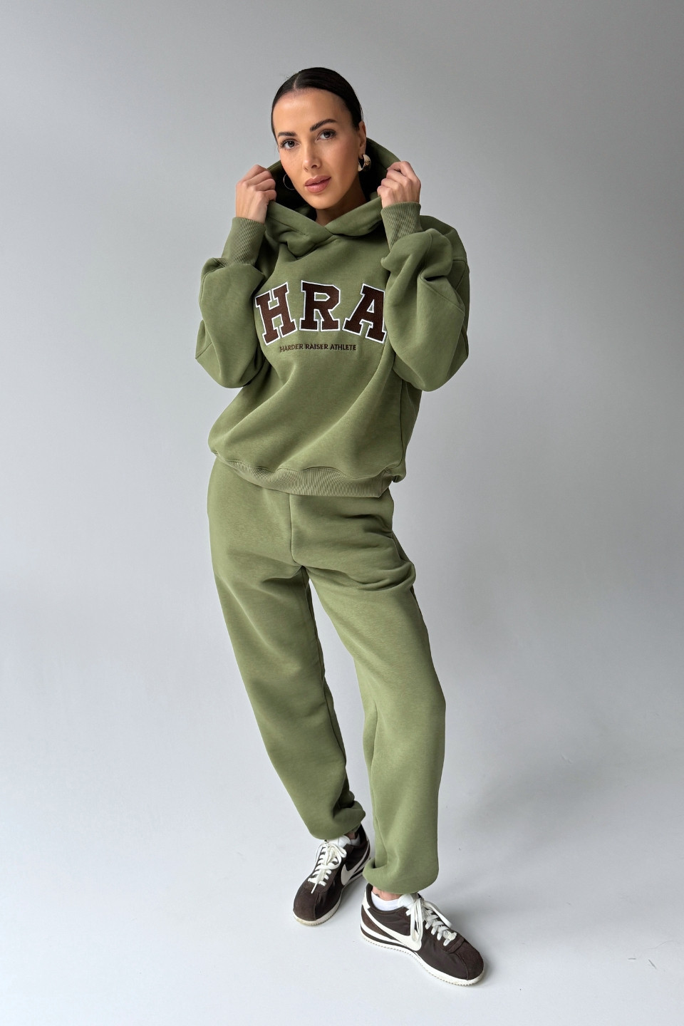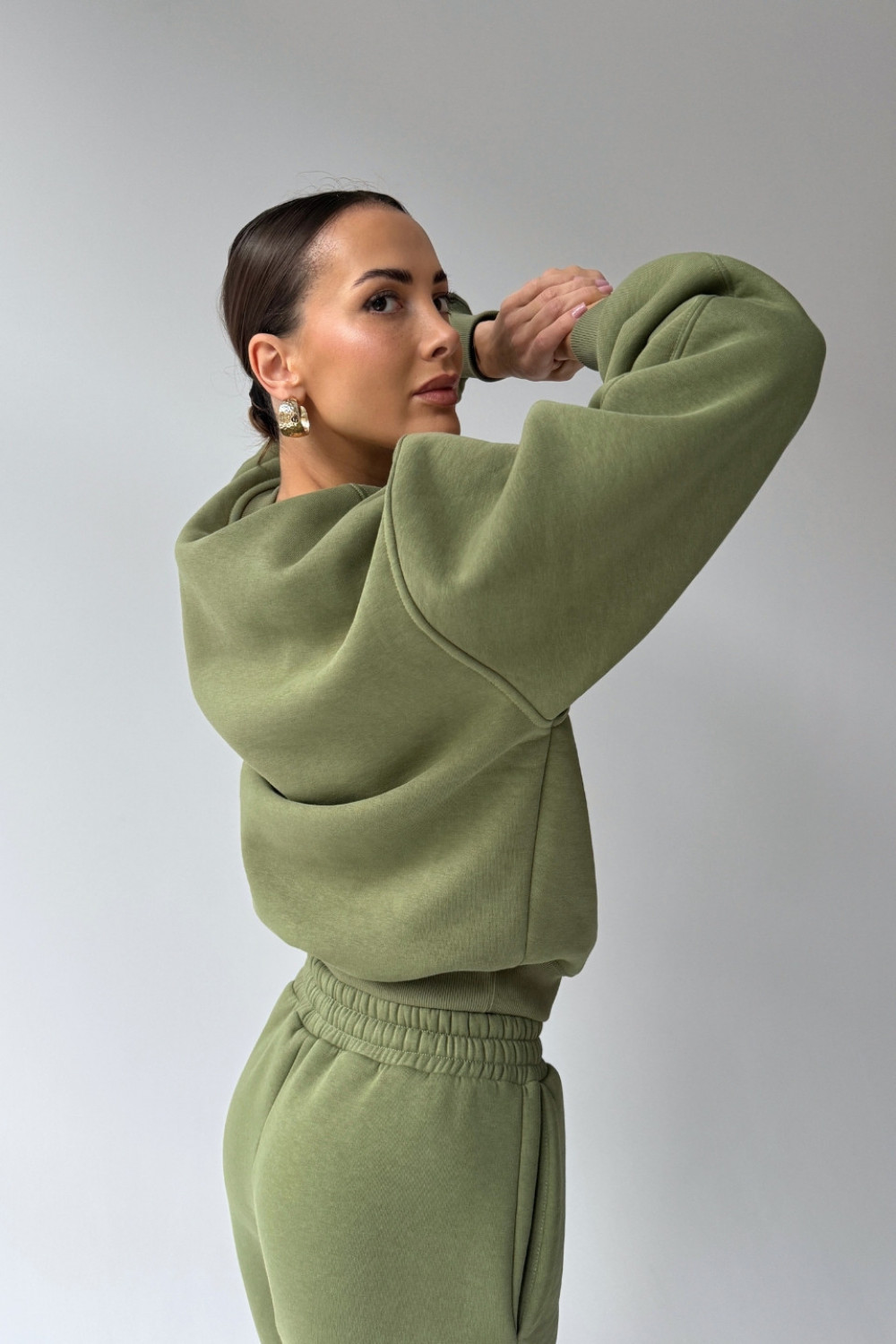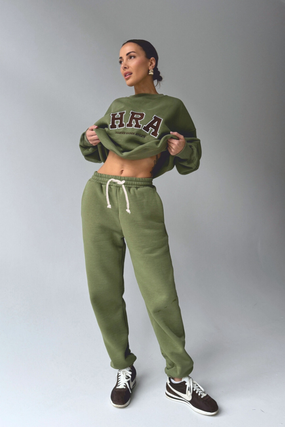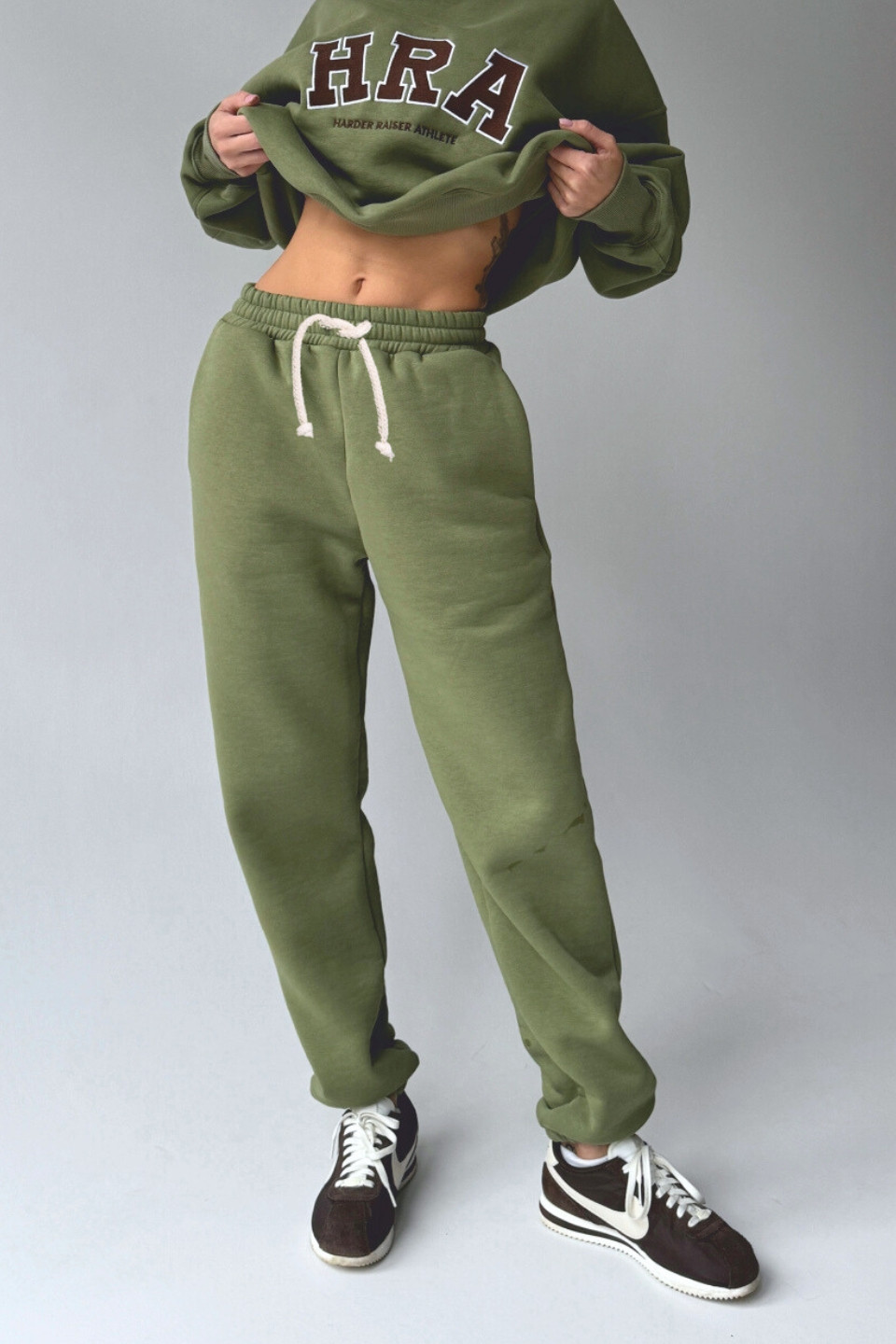Spodnie dresowe typu joggery - oliwkowa zieleń