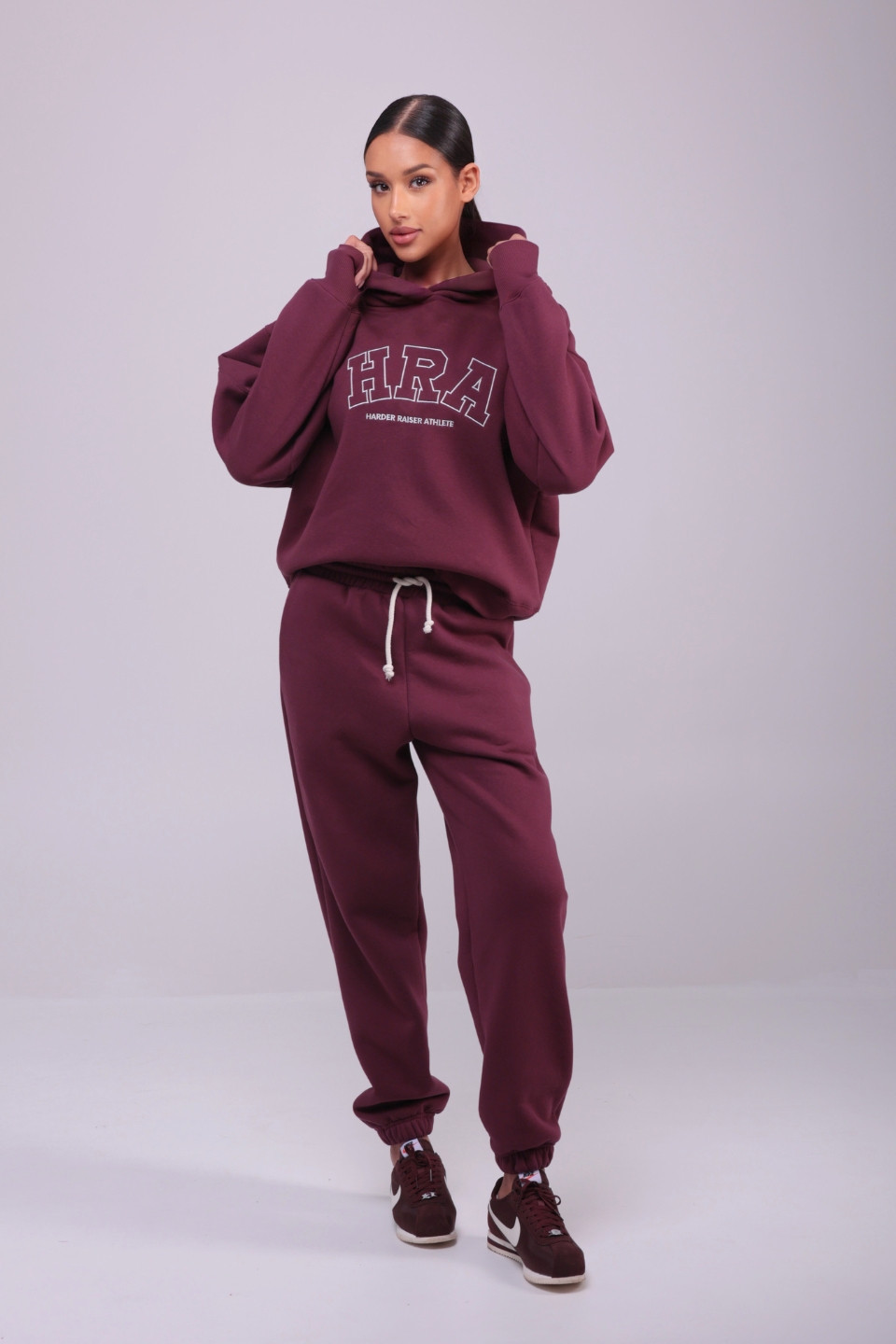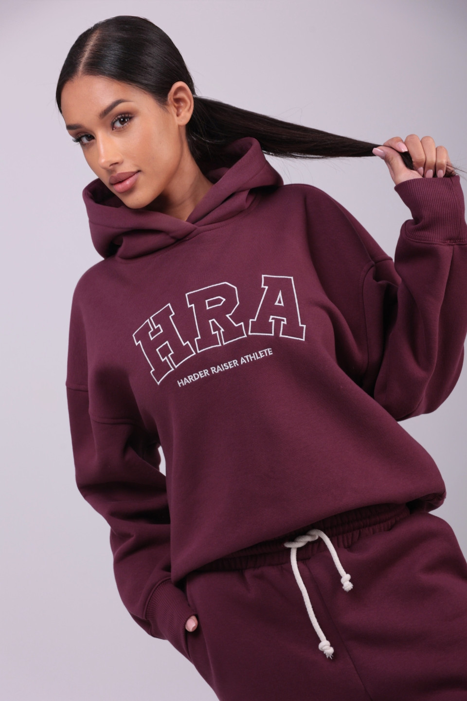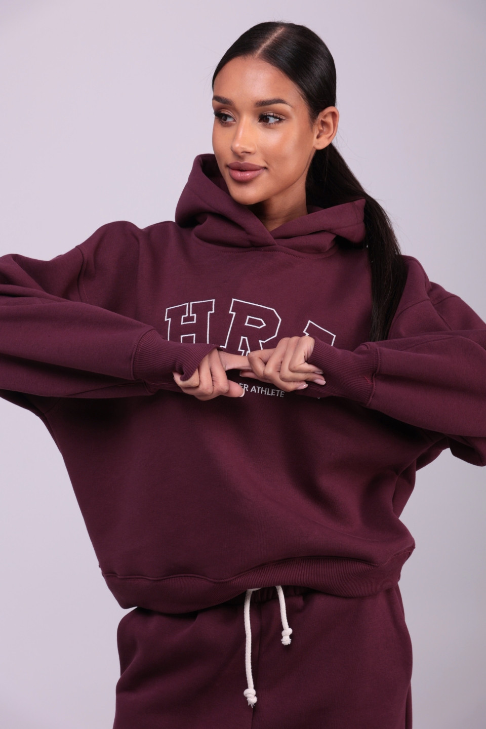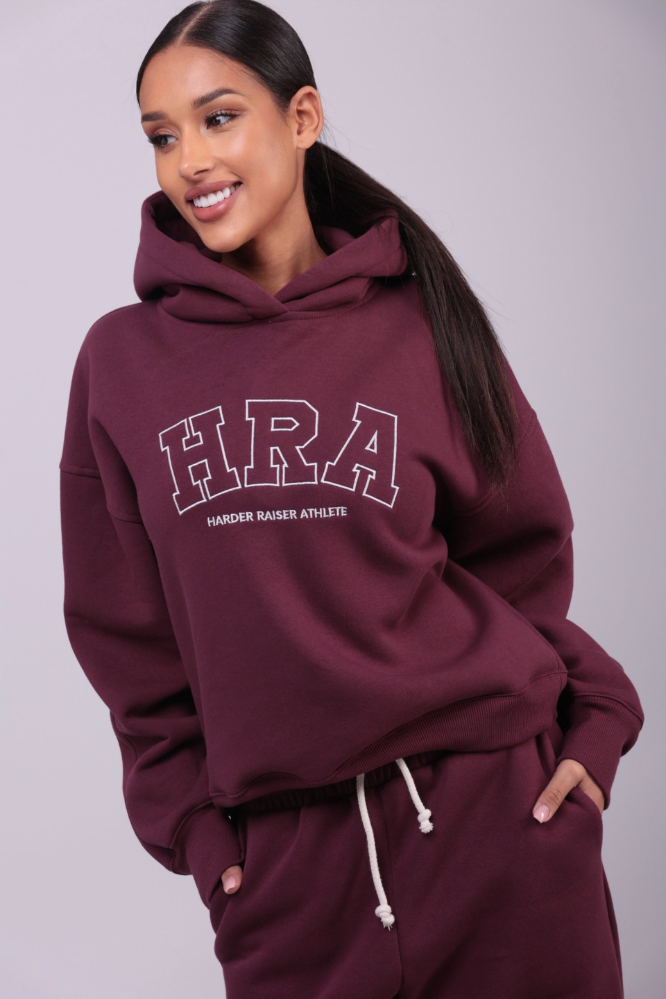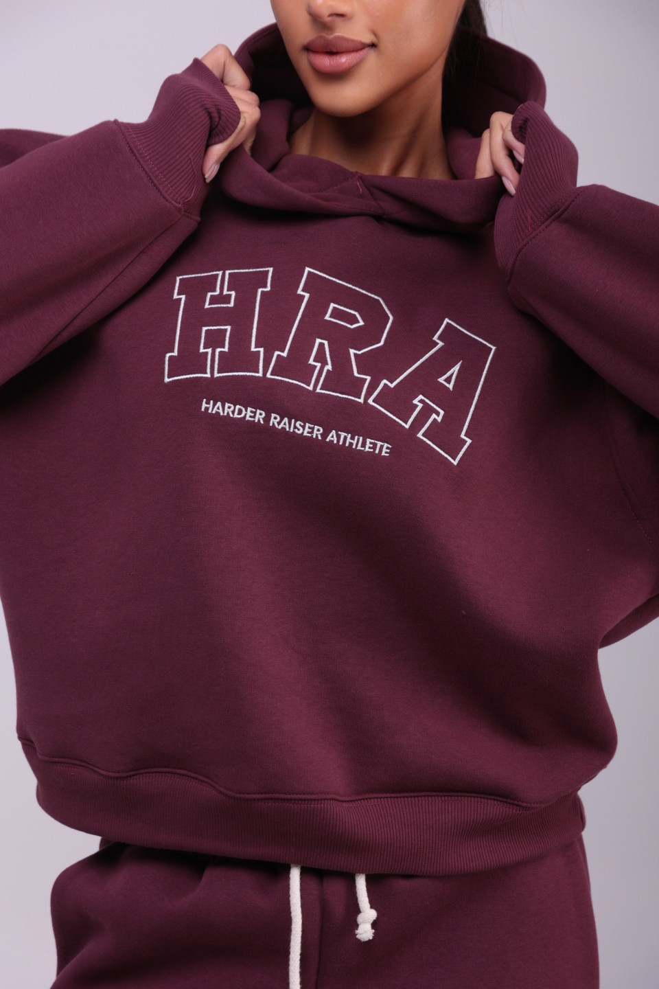 Bluza damska hoodie haft HRA - wino bordeaux