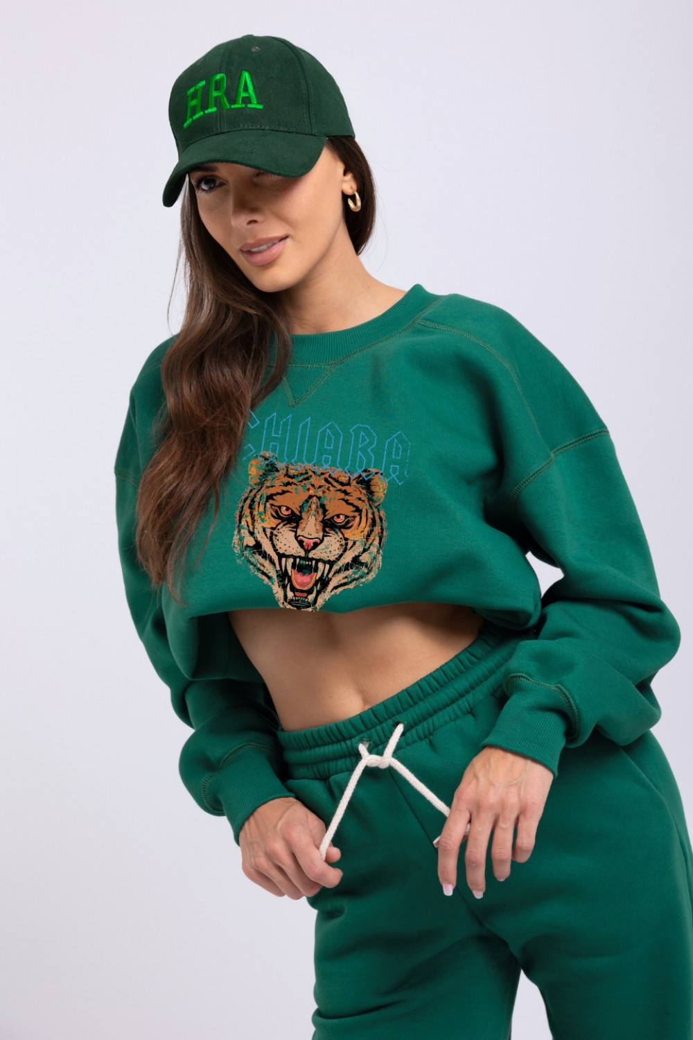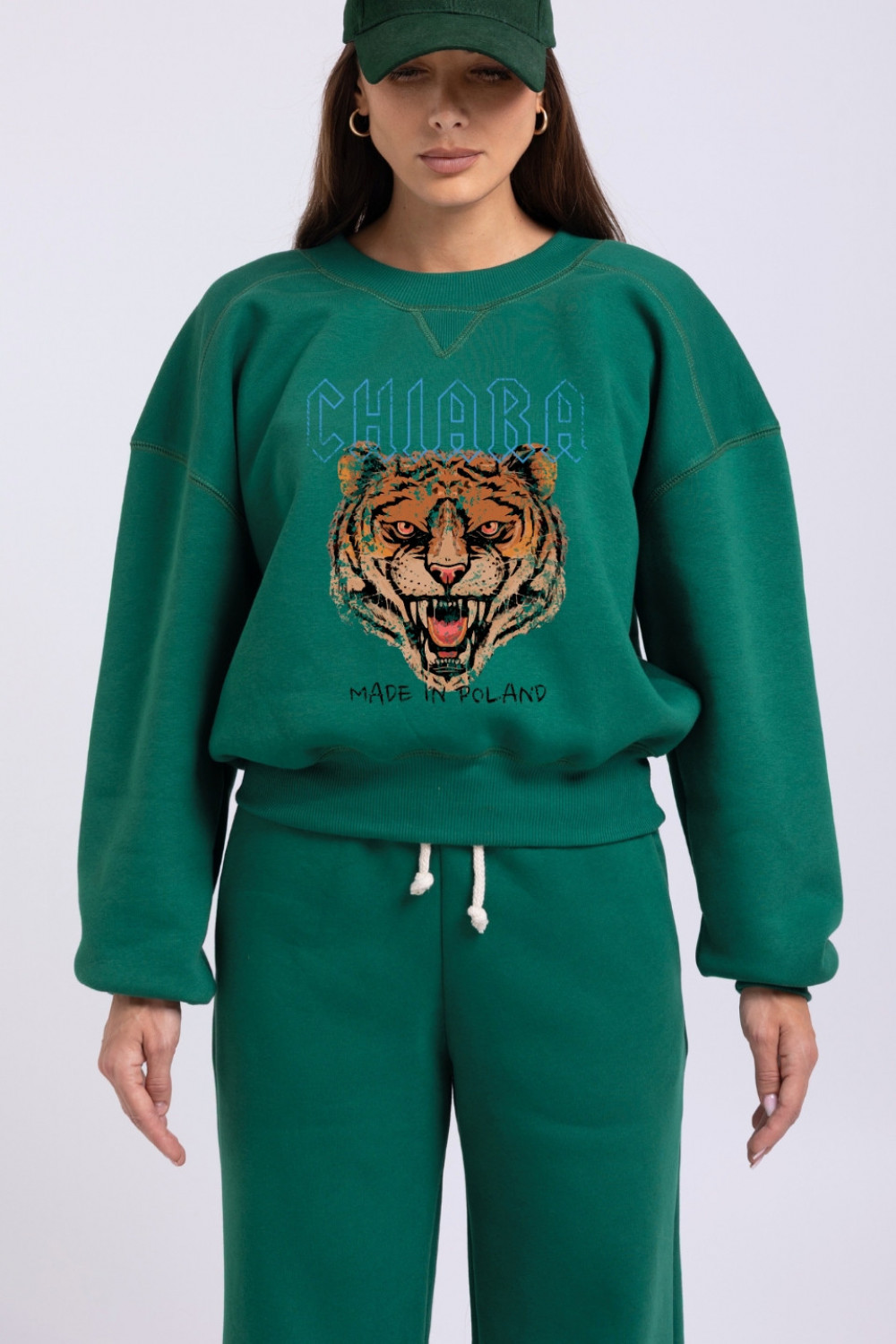 Bluza damska boxy nadruk ROAR - butelkowa zieleń