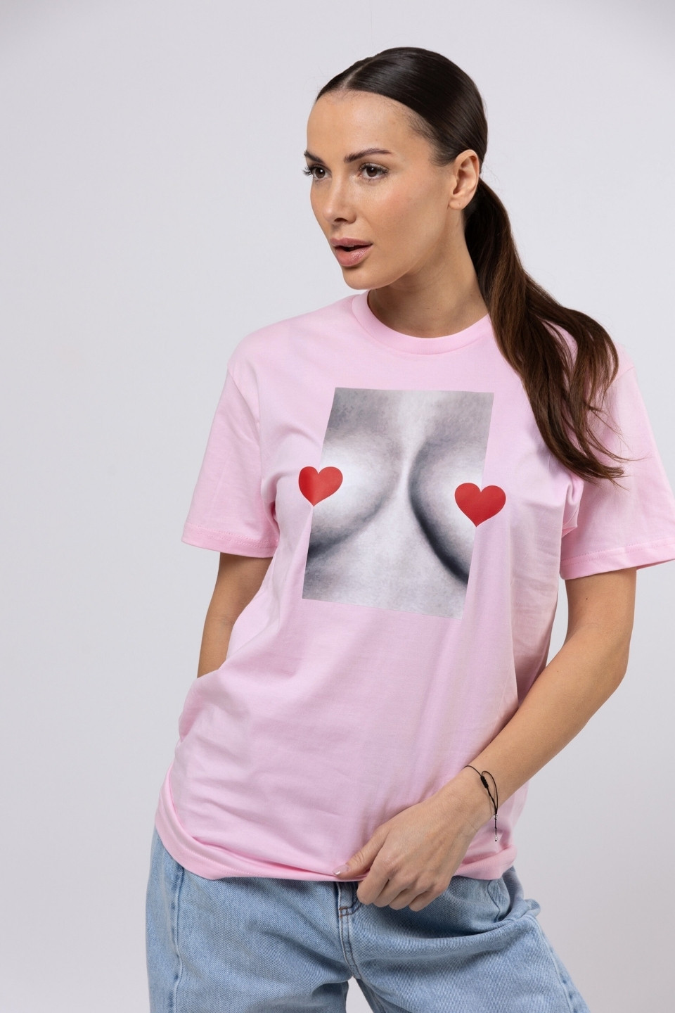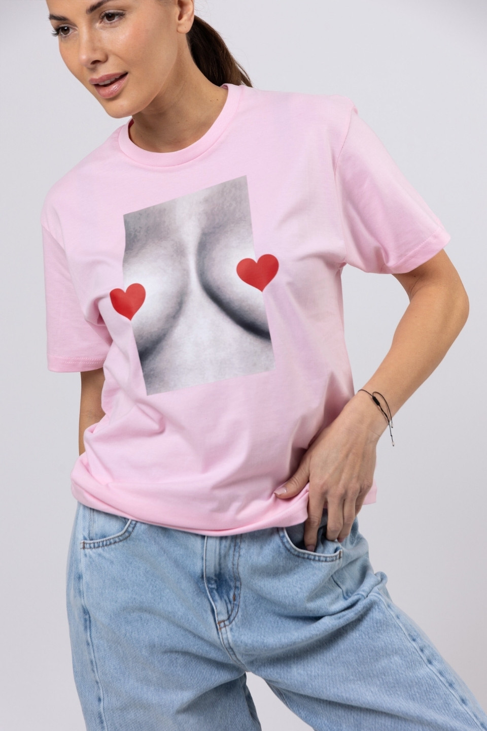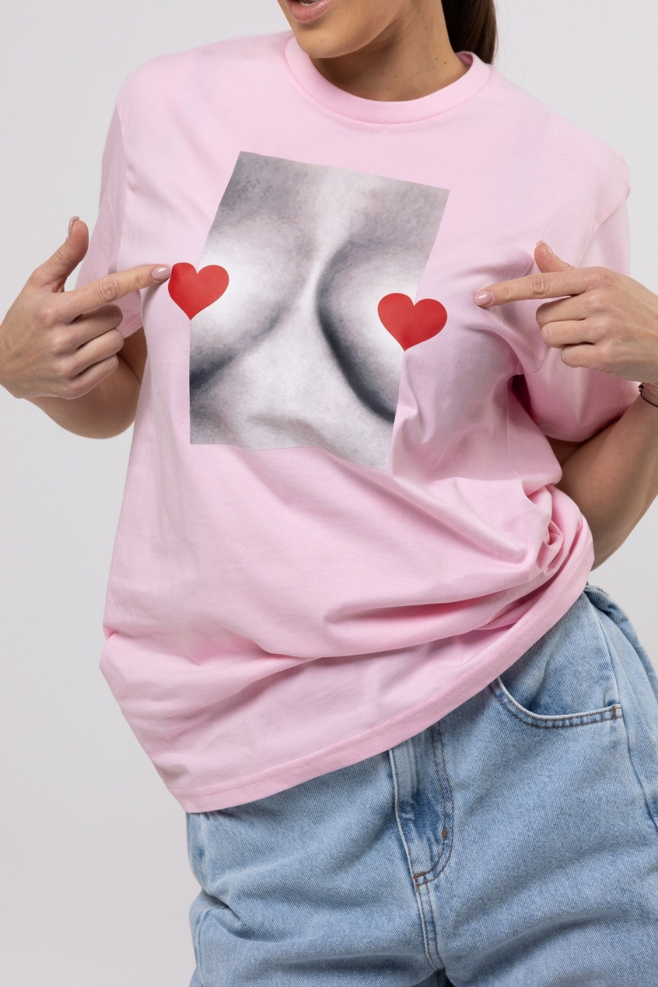 T-shirt bawełna z recyklingu oversize LOVE BOOBIES - różowy