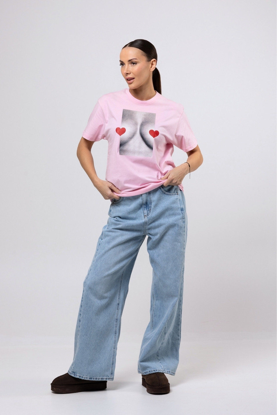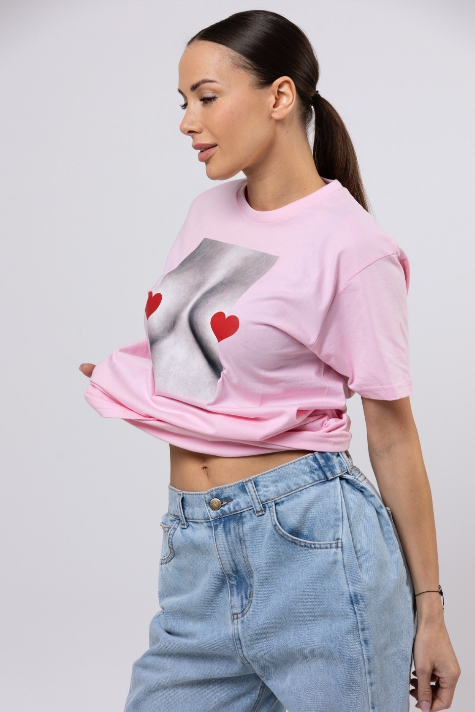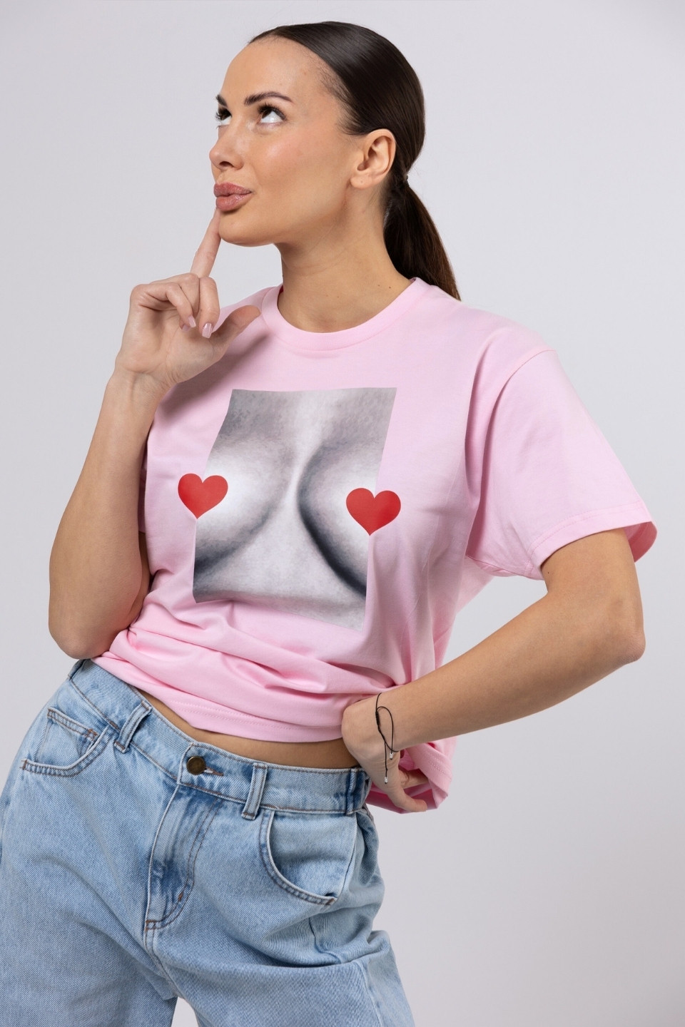 T-shirt bawełna z recyklingu oversize LOVE BOOBIES - różowy