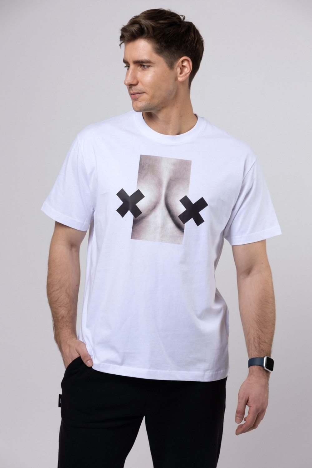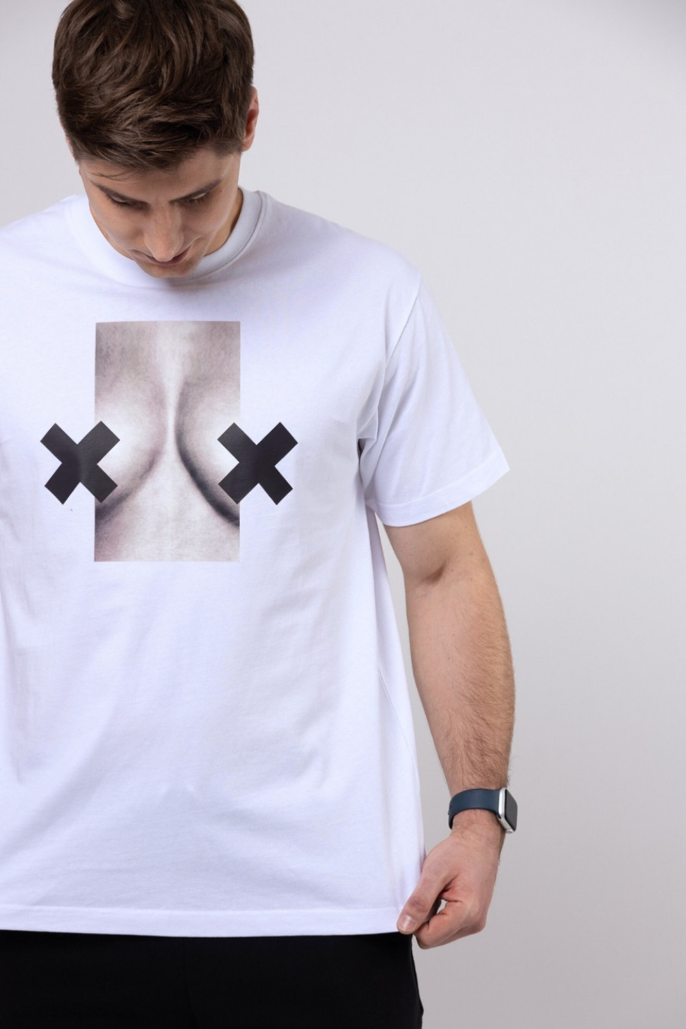 T-shirt bawełna z recyklingu oversize XX BOOBIES męski - biały