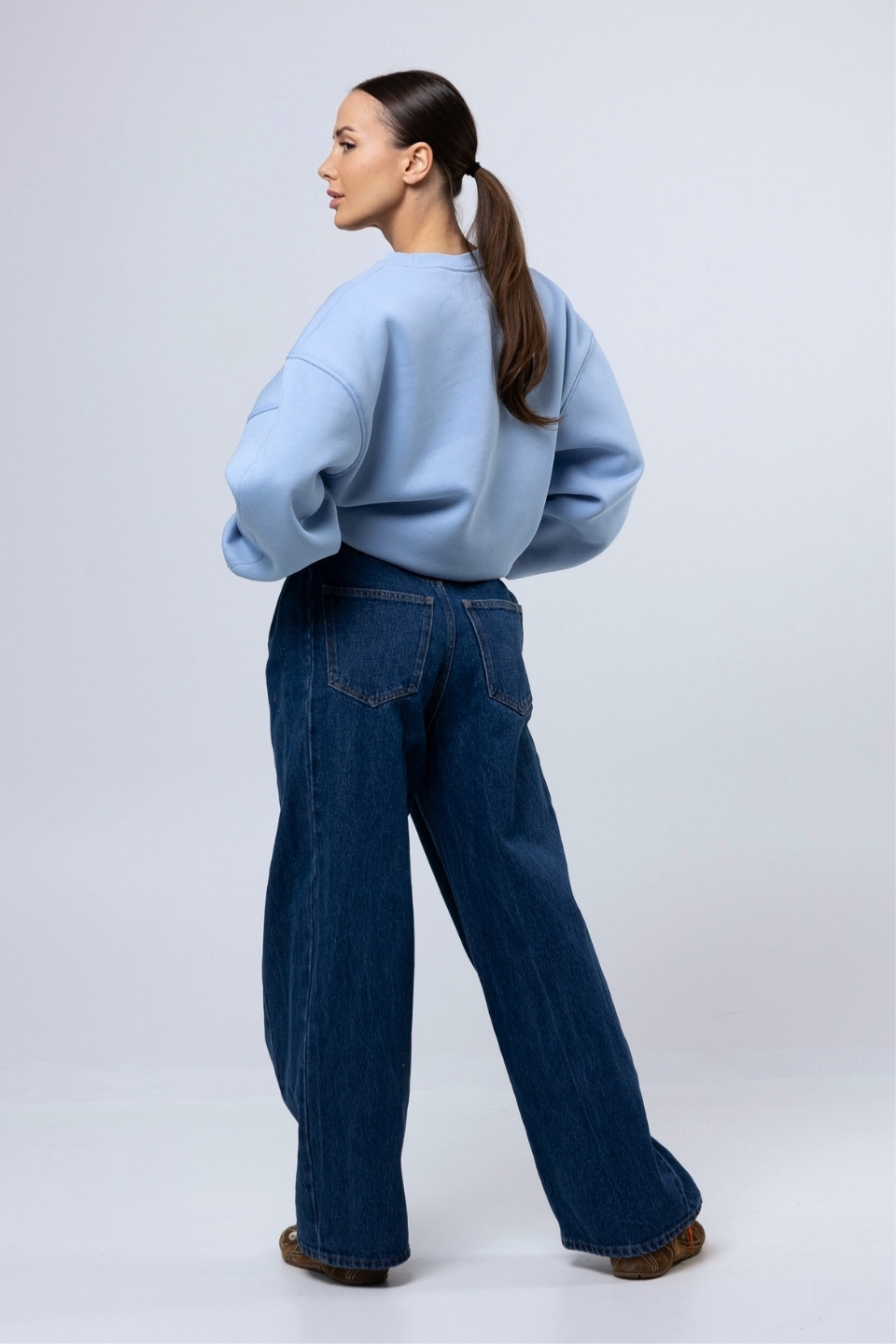 Pastelowy błękit zestawiony z granatowym nadrukiem przywodzi na myśl borówkowe desery po zmroku. Spokojna, minimalistyczna i bardziej premium – idealna dla fanek clean looku.