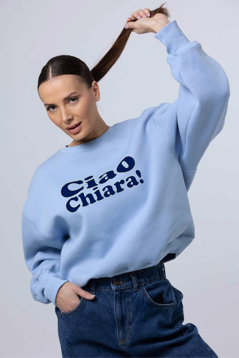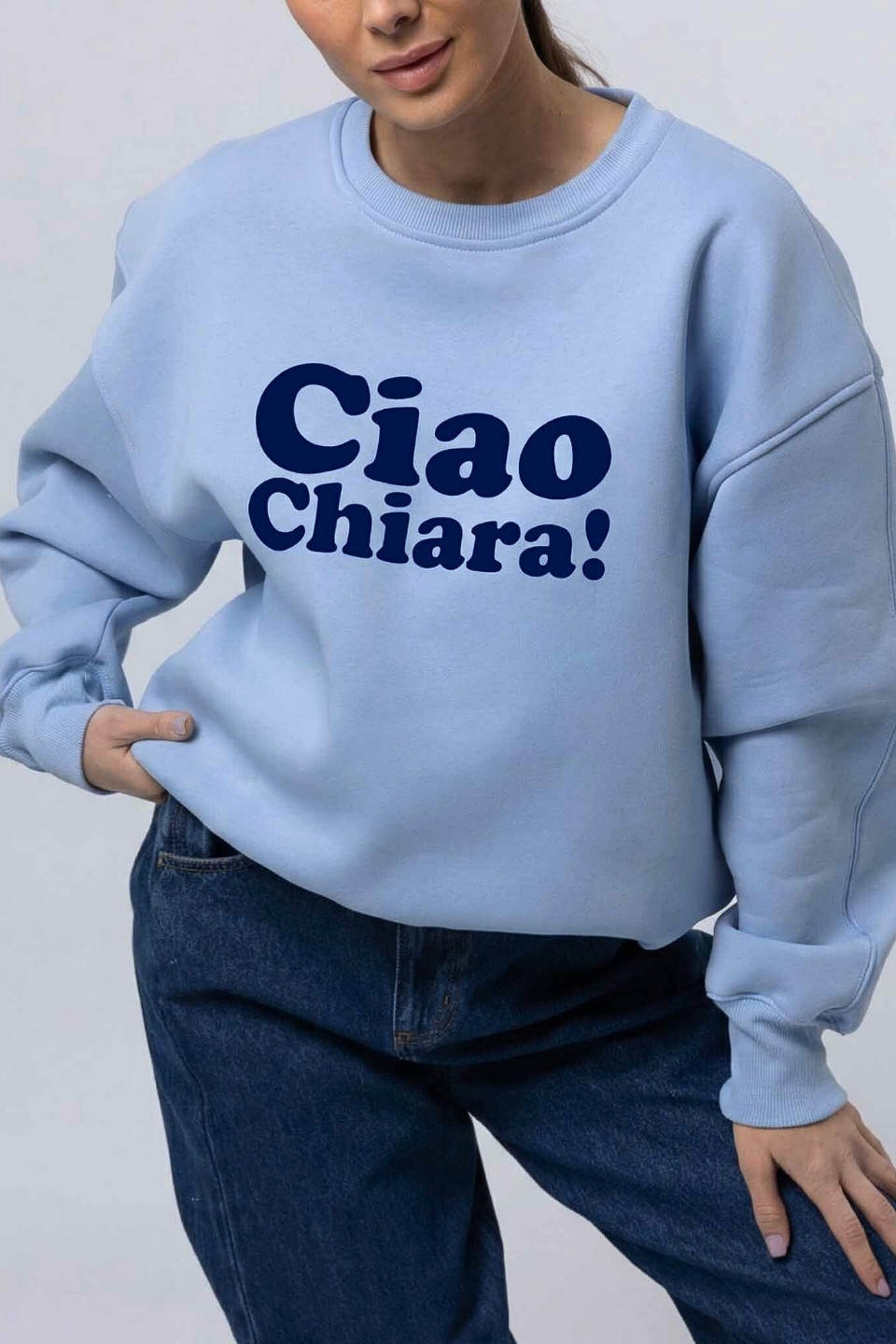- granatowy nadruk CIAO CHIARA wykonany metodą DTF w Katowicach