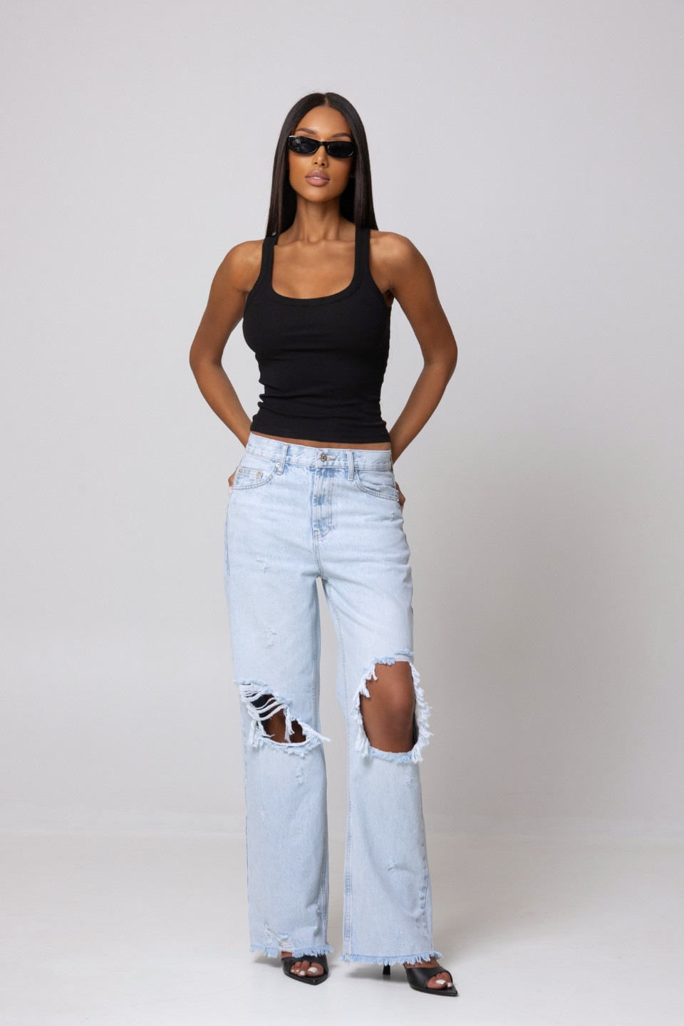 Sara ma 170 cm wzrostu (wymiary 86/60/90) i na co dzień nosi rozmiar XS. Na sobie ma rozmiar XS/S.