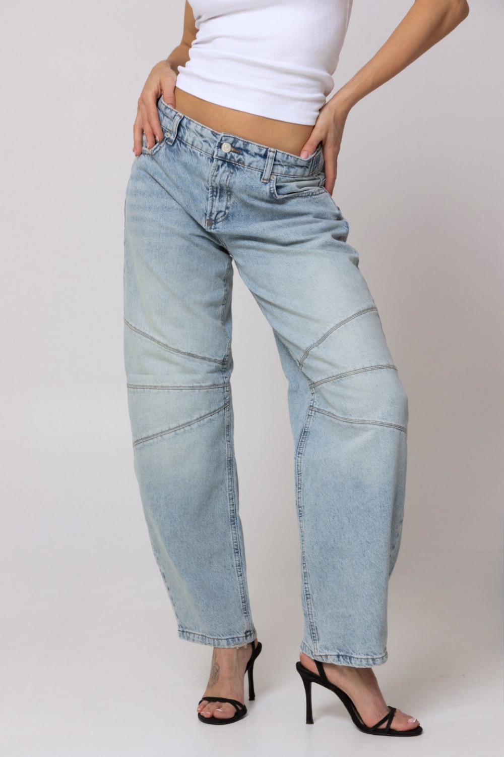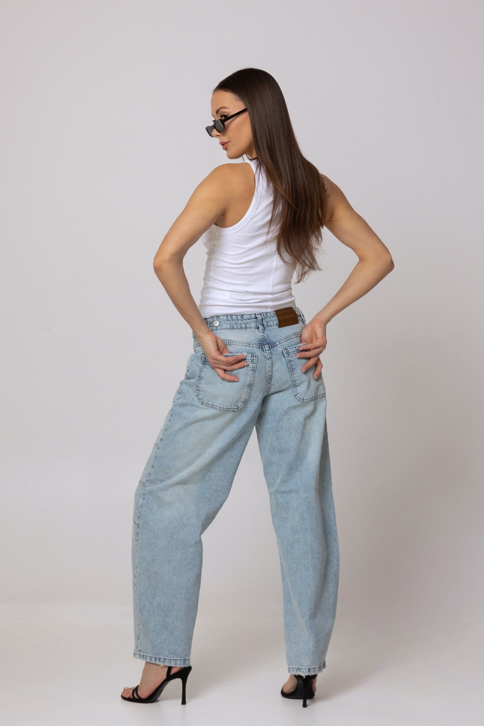 - damskie spodnie jeansowe o kroju balloon