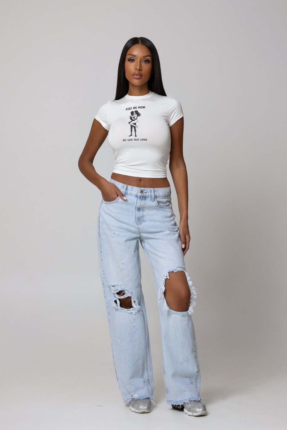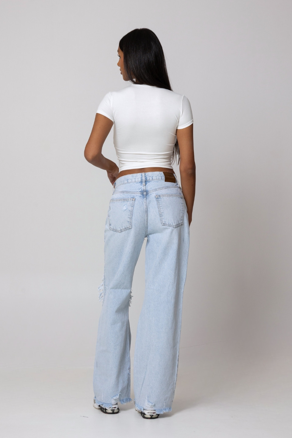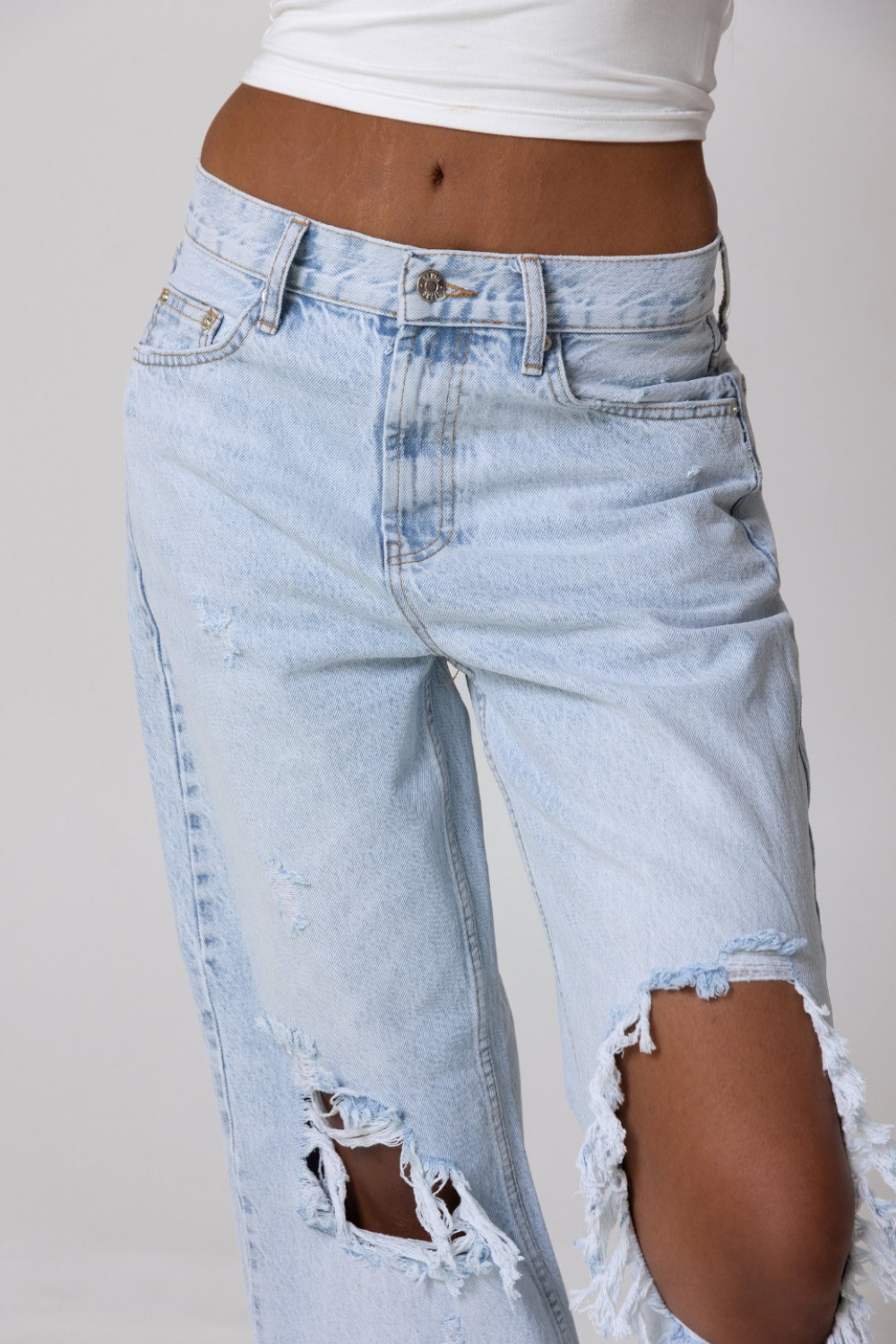 Spodnie jeansowe z dziurami Y2K - light blue denim
